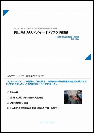 令和8年2月9日におかやま西川原プラザで開催された「岡山県HACCPフィードバック家講習会」の資料等を掲載します。教育訓練等でお役立てください。
